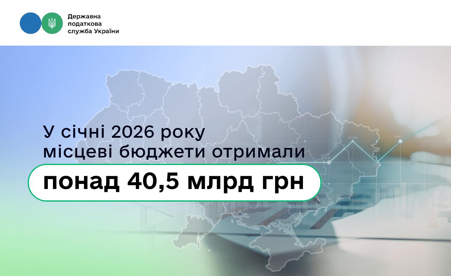 У січні 2026 року місцеві бюджети отримали понад 40,5 млрд грн. Це + 14,2 %, або 5 млрд грн до січня 2025 року. Про це розповіла в. о. Голови ДПС Леся Карнаух на своїй сторінці у Facebook.