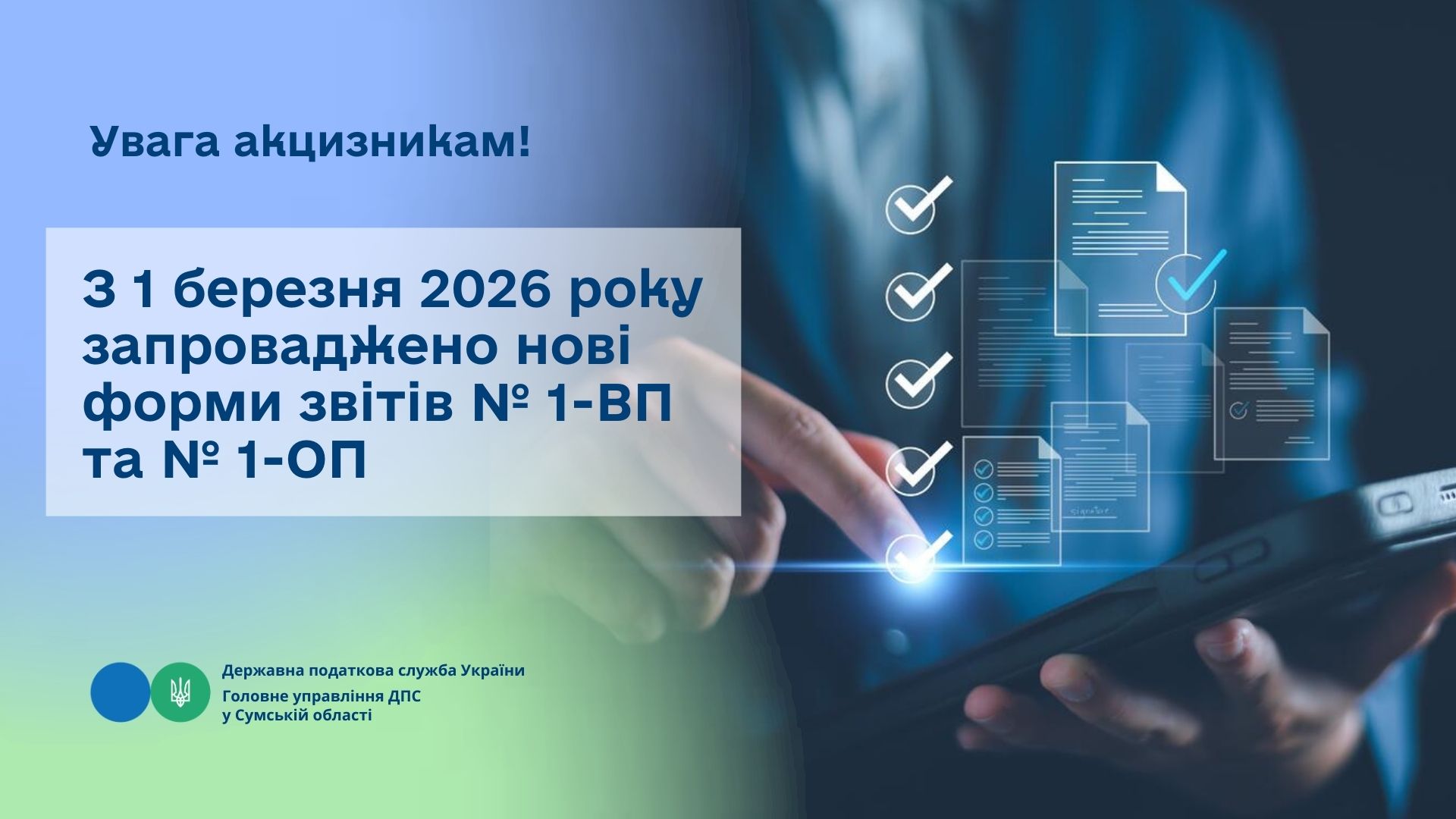 Головне управління ДПС у Сумській області звертає увагу, що відповідно до Наказу МІНІСТЕРСТВА ФІНАНСІВ УКРАЇНИ № 641 з 01.03.2026 запроваджено нові форми звітів: