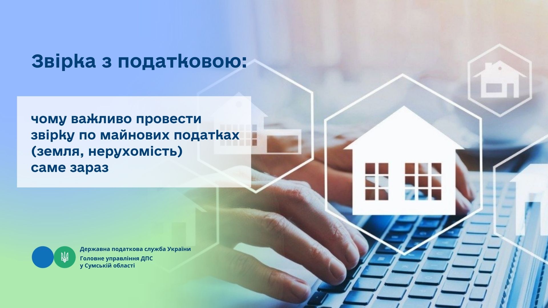 Головне управління ДПС у Сумській області закликає власників нерухомості та земельних ділянок не відкладати на потім перевірку даних щодо своїх об’єктів оподаткування. Своєчасна звірка з податковою службою - це запорука коректного нарахування податків та уникнення непорозумінь у майбутньому.