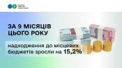 Протягом січня – вересня поточного року до місцевих бюджетів надійшло 358,2 млрд грн. Це на 15,2 %, або на 47,4 млрд грн більше відповідного показника 2024 року.