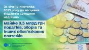 За січень-листопад 2025 року до місцевих бюджетів Сумщини надійшло майже 9,5 млрд грн податків, зборів та інших обов’язкових платежів