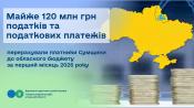 Так, за даними управління економічного аналізу Головного управління ДПС у Сумській області, за січень 2026 року до обласного бюджету Сумщини надійшло 119 155,9 тис. грн податків, зборів та інших податкових платежів, що на 12 781,0 тис. грн (або 12%) більше, ніж за відповідний період 2025 року.