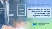 Враховуючи зазначене, Заява подається за місцем обліку надміру та/або помилково сплачених сум єдиного внеску одним із таких способів: